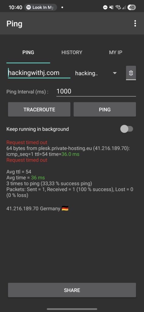 The target was my phone. Results: