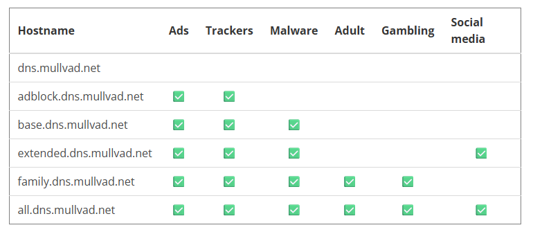 These “security-focused” DNS servers don’t just block random sites — they mainly block known malicious domains, which adds a nice baseline of protection for less technical users on the network. Other servers: