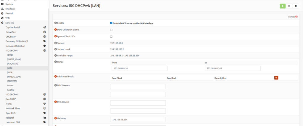 Go to: Services > ISC DHCPv4